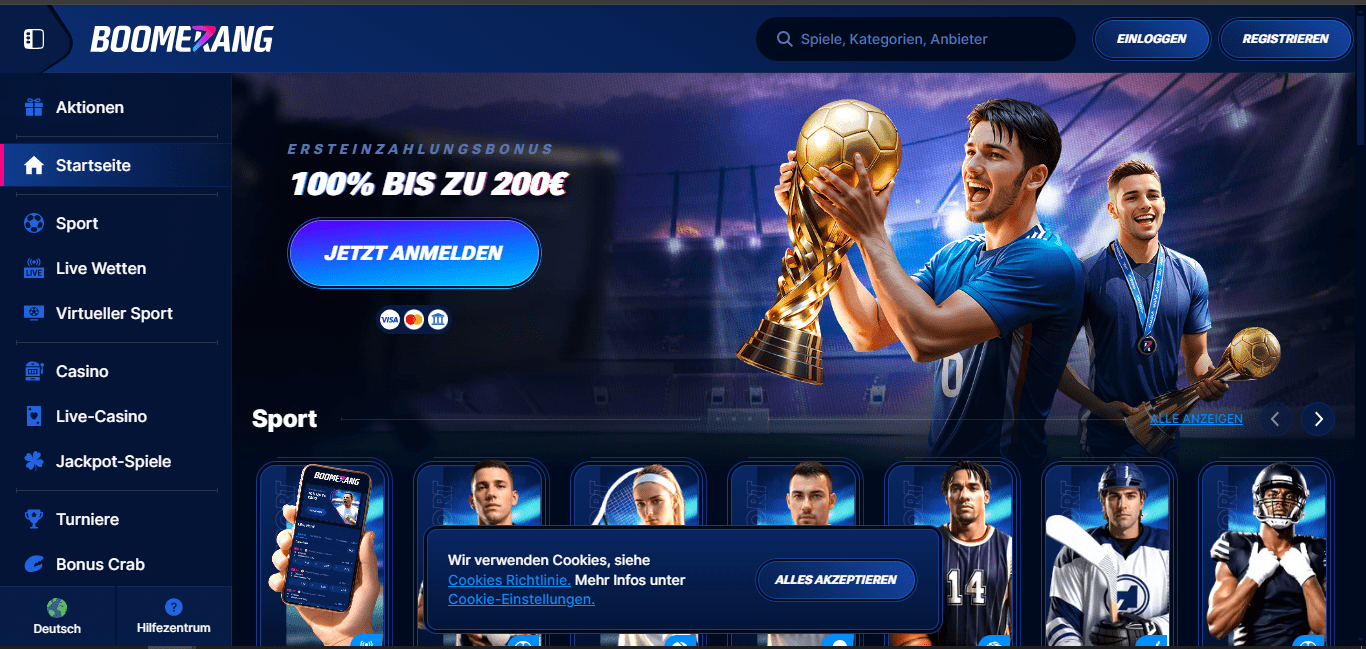 Das 2023 gegründete BoomerangBet Casino ist im Besitz und wird betrieben von der Casbit Group N.V., einem Unternehmen mit umfassender Erfahrung in der iGaming-Branche. Zu den Schwesterseiten von BoomerangBet Casino gehören unter anderem OxBet Casino, Justbit Casino und Lalabet Casino. In Bezug auf die Sicherheit ist das BoomerangBet Casino lizenziert und unterliegt den Regeln und Vorschriften von Curacao, was bedeutet, dass Sicherheit kein Problem darstellt. Neu registrierte Spieler werden sogar mit einem 100 %igen Sport-Willkommenseinzahlungsbonus von bis zu 500 € begrüßt.