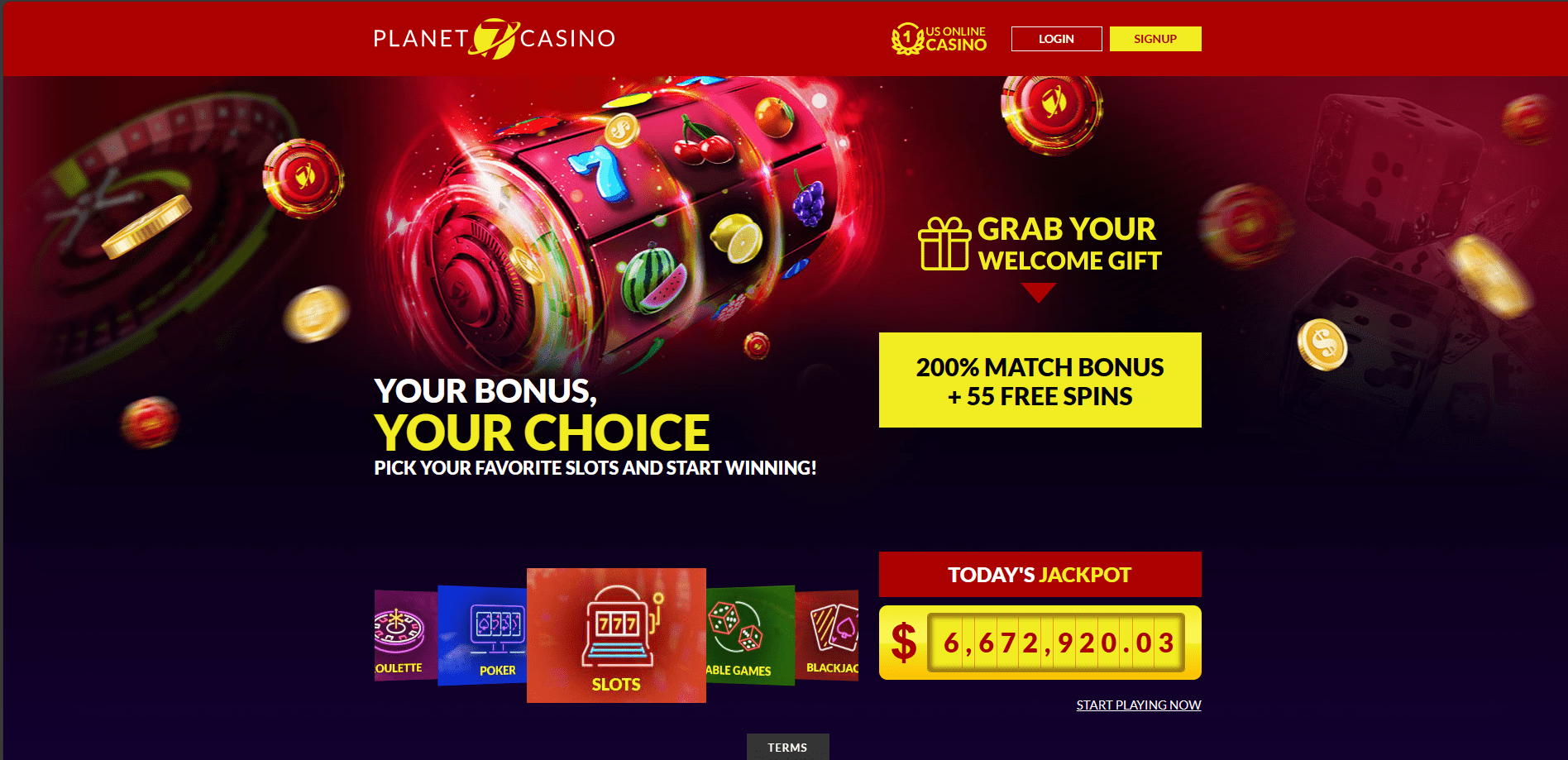 Yksi verkkosivusto, joka ilmoittaa itsensä online-kasinoksi, joka hyväksyy pelaajia Yhdysvalloista, on Planet 7 Casino. Heidän pelivalikoimansa on rajallinen, mutta heidän talletusottelunsa ja tervetuliaisbonuksensa ovat huomattavia. Väitteitä, että sivusto on paras online-kasino, löytyy kaikkialta. He eivät kuitenkaan mainitse mitään erityisiä tunnustuksia tai tarkkoja äänestäjiä, jotka nimesivät heidät suurimmaksi kasinoksi. Nämä väitteet vahingoittavat kasinoa vain, koska ne antavat laitokselle tahmean ja laittoman ulkonäön.